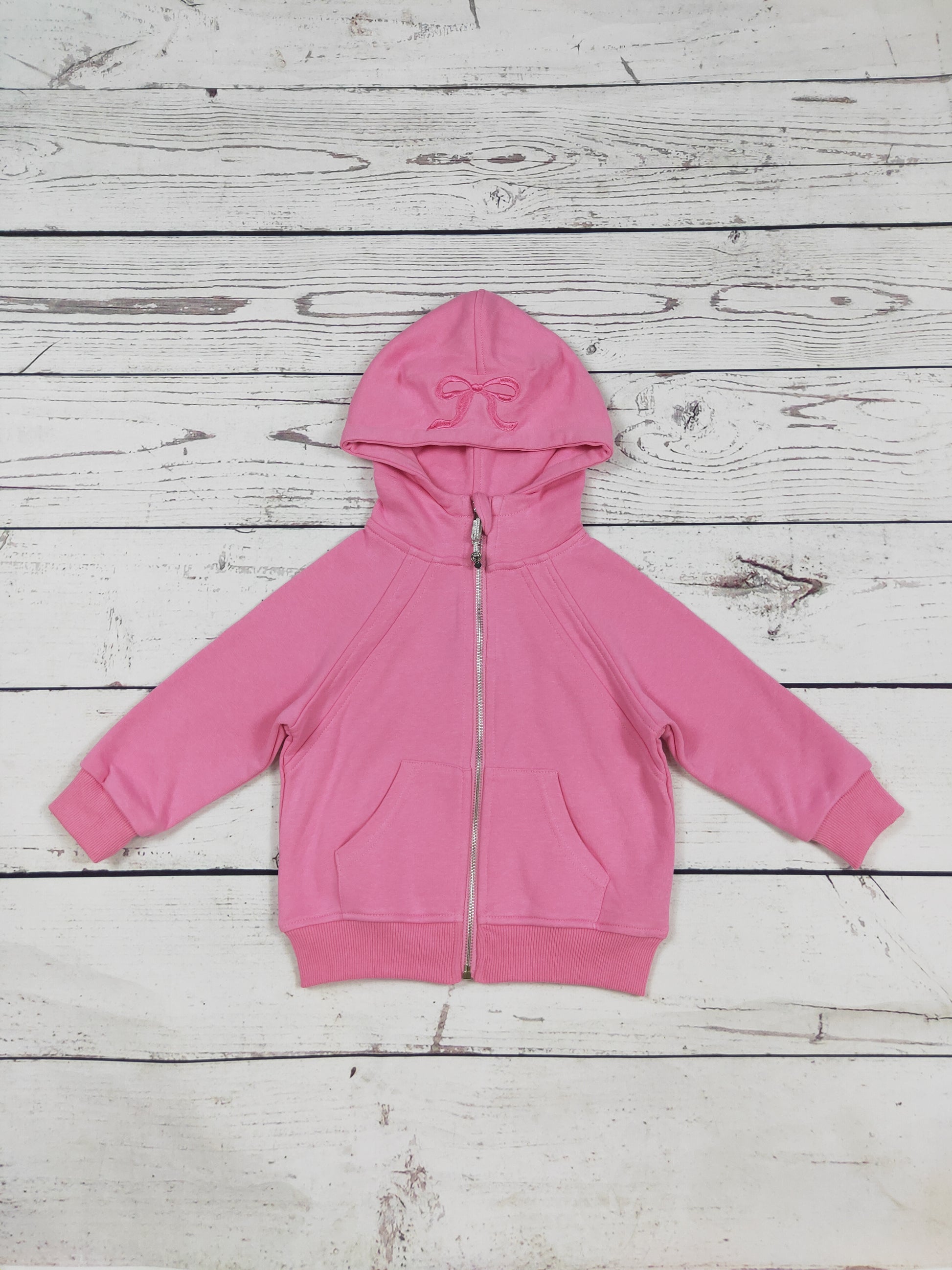Pink Bow Appliqué Cotton Kids Girls Full-Zip Hoodie