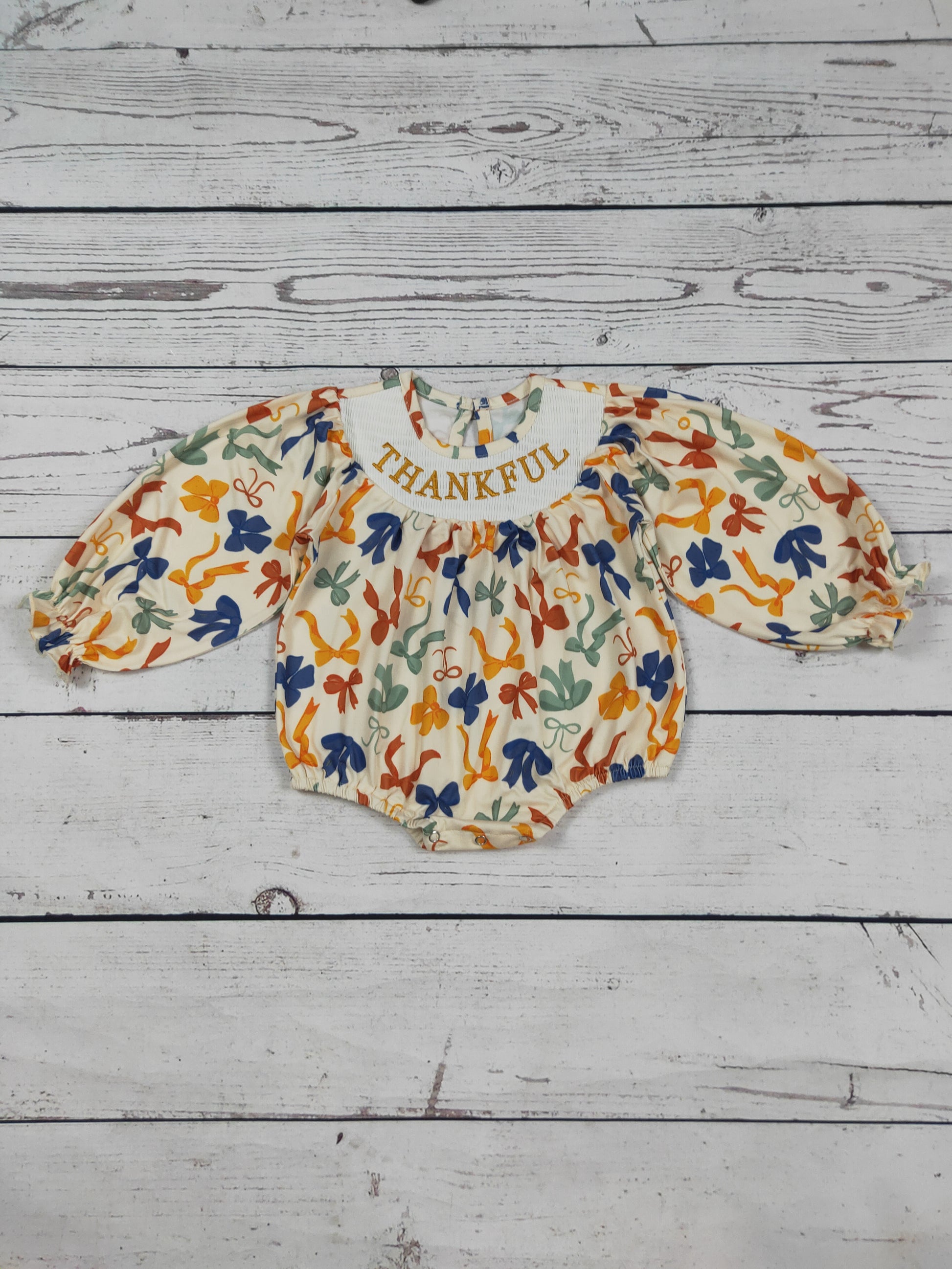 Merry Christmas Smocked Bow Printed Baby Bubble